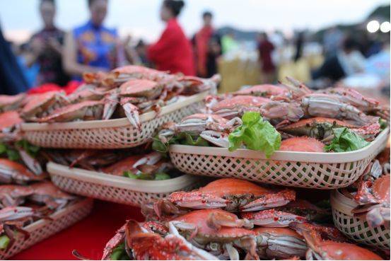 这场盛宴随着渔歌《美丽小岛》拉开了序幕,更是在阿姐囡渔鼓队《万船春风万船歌》嘹亮有美妙的歌声中,看见远方四位帅哥抬着门板一样大装满螃蟹的容器徐徐走来,一桌一桌的给所有的小可爱们上菜,当然啦,也包括小曦这个小吃货啦