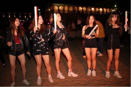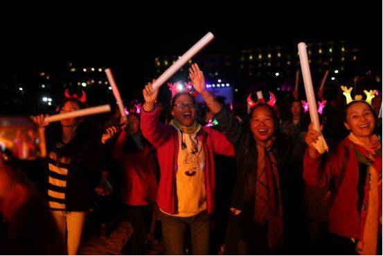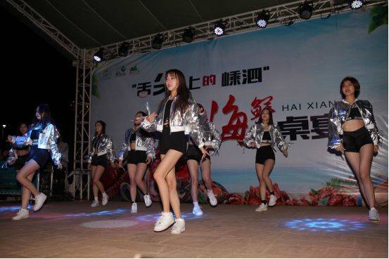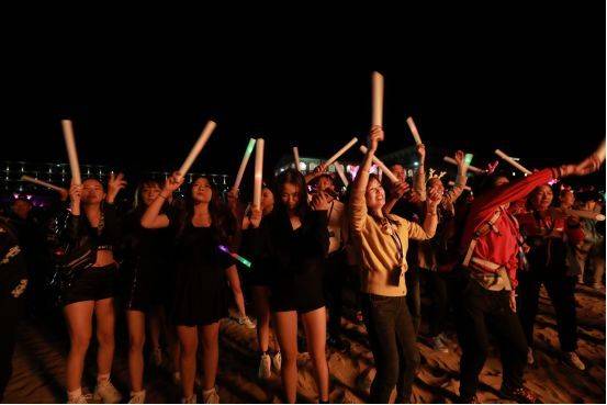由歌声,舞蹈,沙滩,篝火以及海鲜长桌宴,形成了一片集美旖旎的嵊泗美景,别以为这样就结束了哦,海鲜宴过后有8位美少女引领着200位户外小可爱们围着篝火翩翩起舞狂欢,完成了一场有篝火放肆燃烧的秋夜激情。