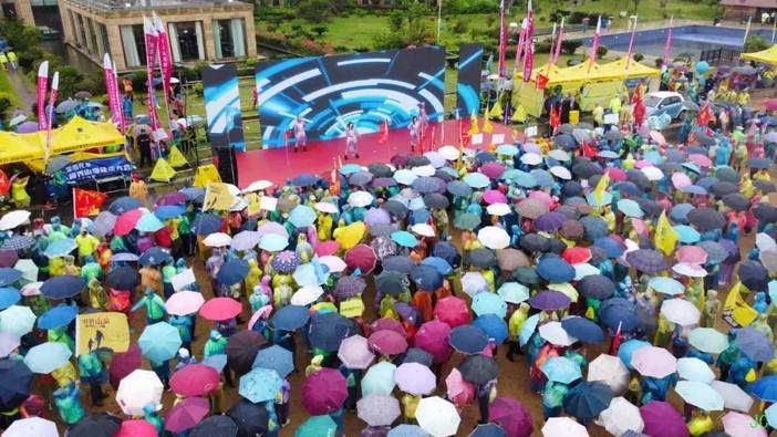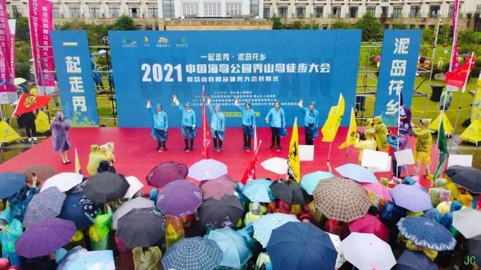 今天上午,2021中国海岛公园秀山岛徒步大会暨岱山县群众体育大会开幕式在岱山县秀山乡吽唬沙滩圆满落幕,3000余人在雨中徒步感受别样乐趣!