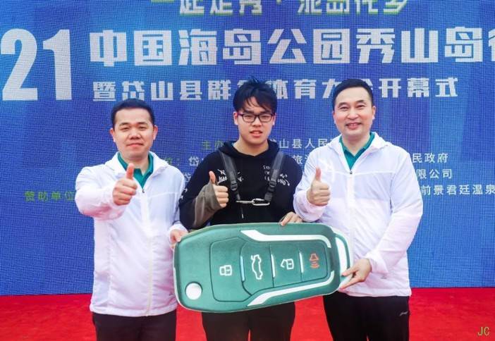徒步人员全部回到主会场后,还举行了盛大的抽奖仪式——豪抽汽车一辆。随机邀请了现场一位五月生日的活动人员上台操作抽奖,在岱山县公证处公证人员的全程公证和监督下,由来自上海的龚先生中得特等大奖——欧拉新能源汽车一辆!