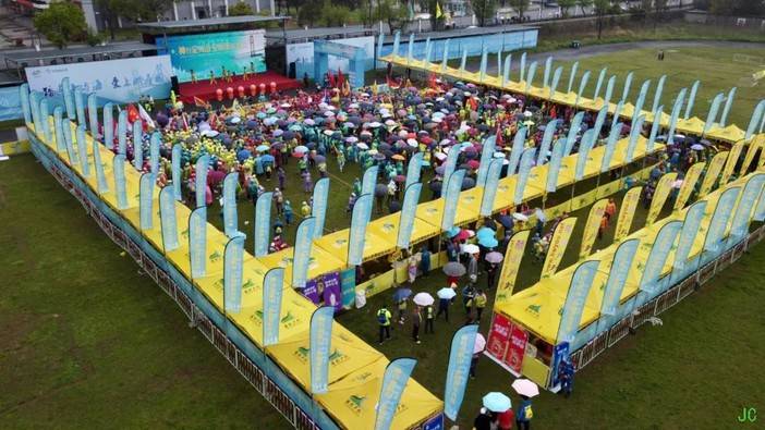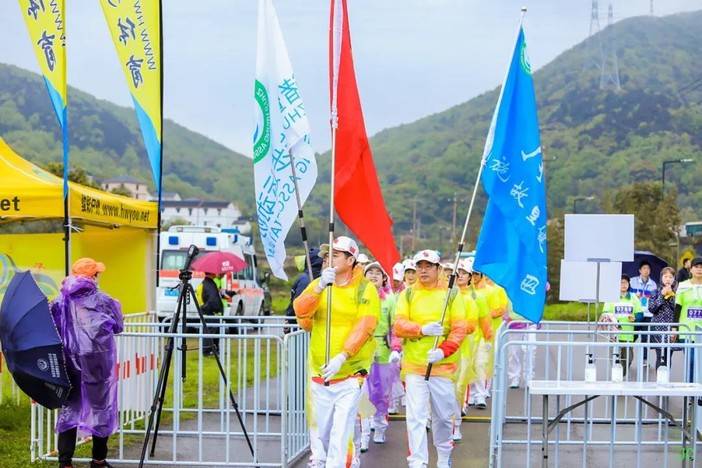 距离开幕仪式还有1个小时,陆陆续续就有穿着赛事服的选手进入会场~尽管下着蒙蒙细雨,依然没有阻挡选手们的热情~