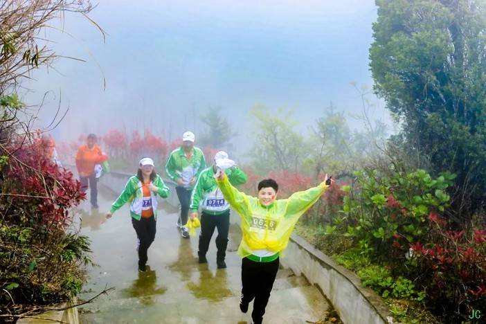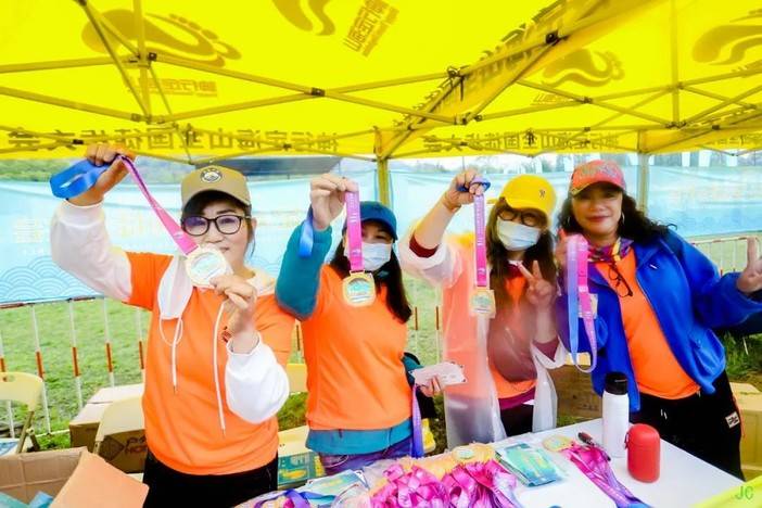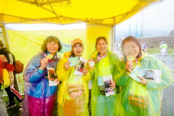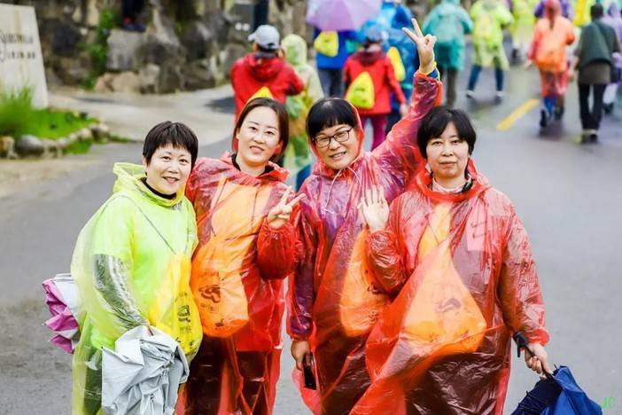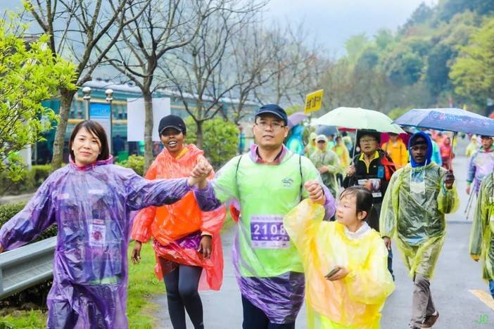 回到终点,阴雨天,穿着湿哒哒的衣服,选手们依然拿着奖牌露出了开心可爱的笑脸,对于徒步大会南洞艺谷的喜爱热情溢于言表~