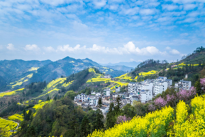 每年的四月间,是石潭村最美的季节,春暖花开的时候,油菜花、桃花、梨花、漫山遍野,晨暮之间云雾弥漫,再加上忽隐互现的古朴村庄,组合成了一幅美妙画卷。