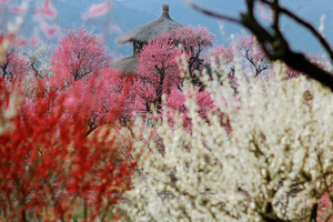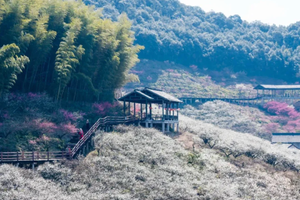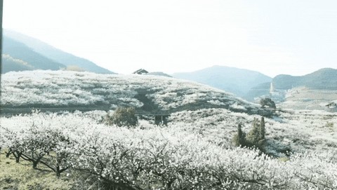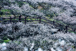 在美丽的梅园中穿梭,