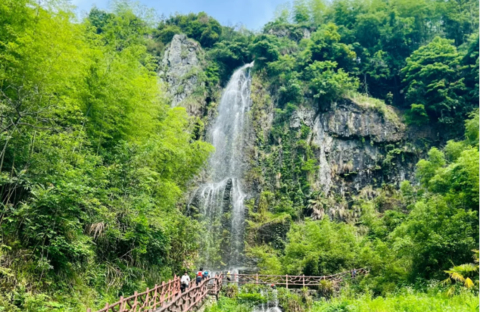 上午10:00左右到达起点开始今天的徒步,章里古道以石板路、竹林幽径为主,新手友好。沿途可赏火山岩乌石浪奇观、山涧溪流与姐妹瀑布,穿行古村茶园,感受浙北山野秘境与烟火气。